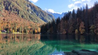 プレディル湖 (Lago del Predil) とプレディル鉱山 (Cave del Predil)